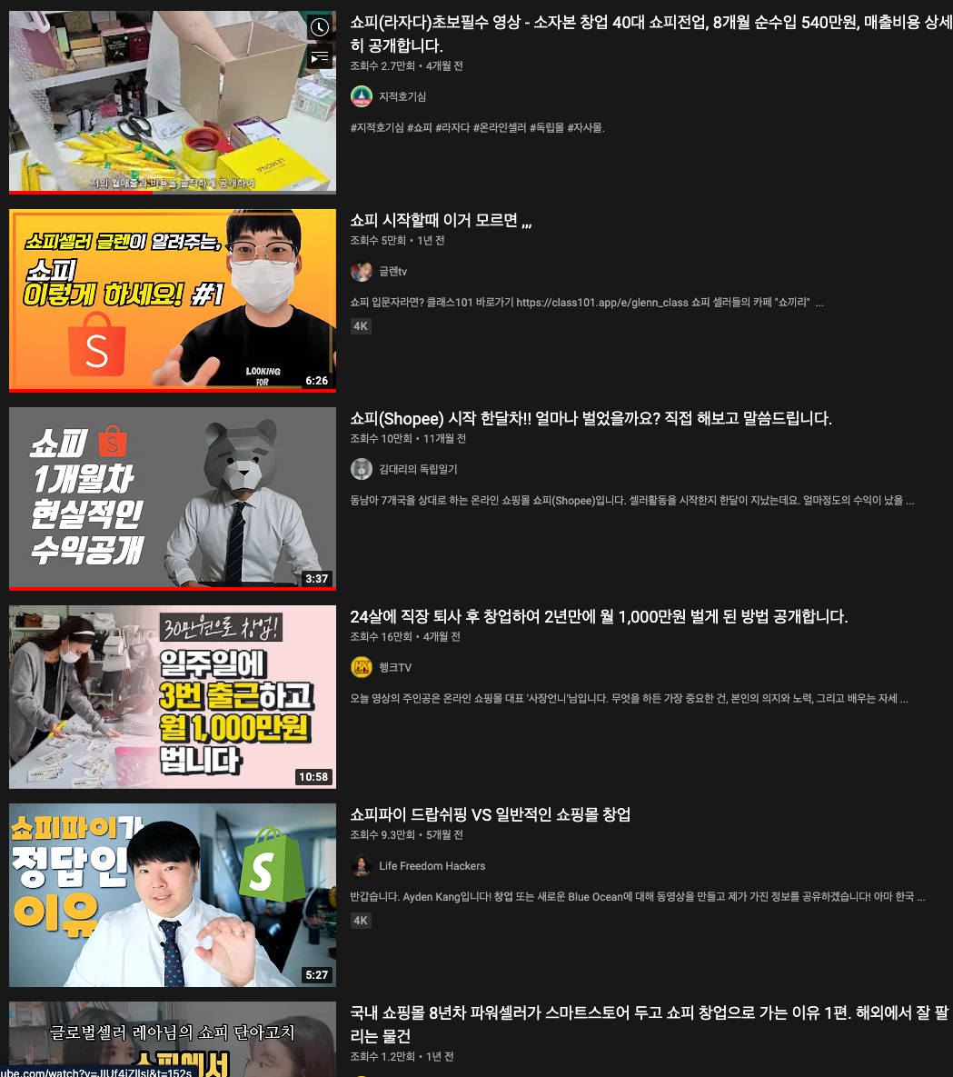 한 때는 유튜브에서는 **이라는 사람이 유명한 채널에 출연해 이거 이렇게만 올려도 다 팔려요 하고 광고아닌 광고로 너도 나도 (진짜 나도) 쇼피에 몰리는 데 한 몫을 한 것도 같다.