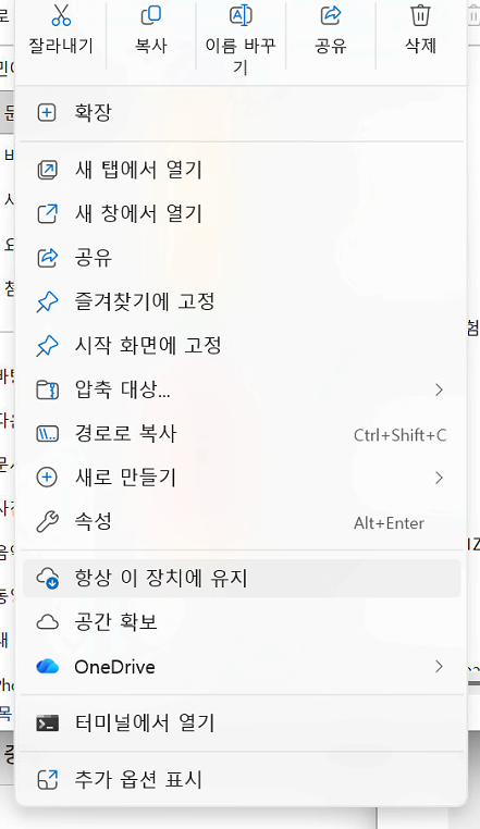 ✔️ 4. 폴더가 현재 사용 중이거나 ‘항상 이 장치에 저장’ 설정이 켜진 경우