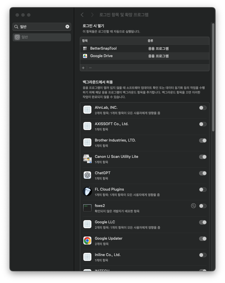 맥북에서 해커스 스타플레이어 자동 실행/백그라운드 동작 끄는 방법 (Axissoft 비활성화 설정)