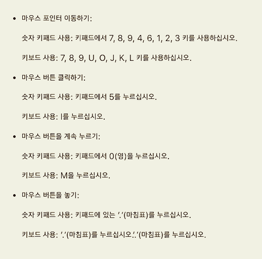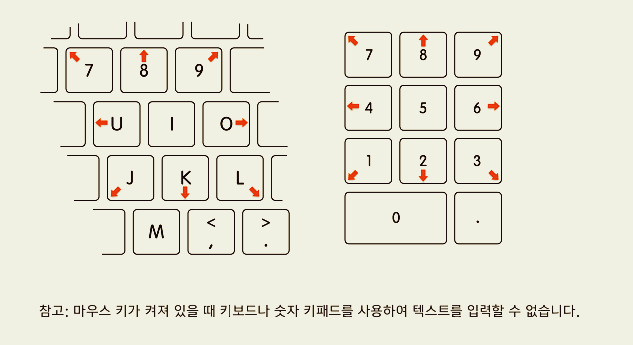 이 방법은 조금 불편하지만 마우스를 움직이는 것조차 안된다면 키보드를 통해 마우스처럼 제어할 수 있다.