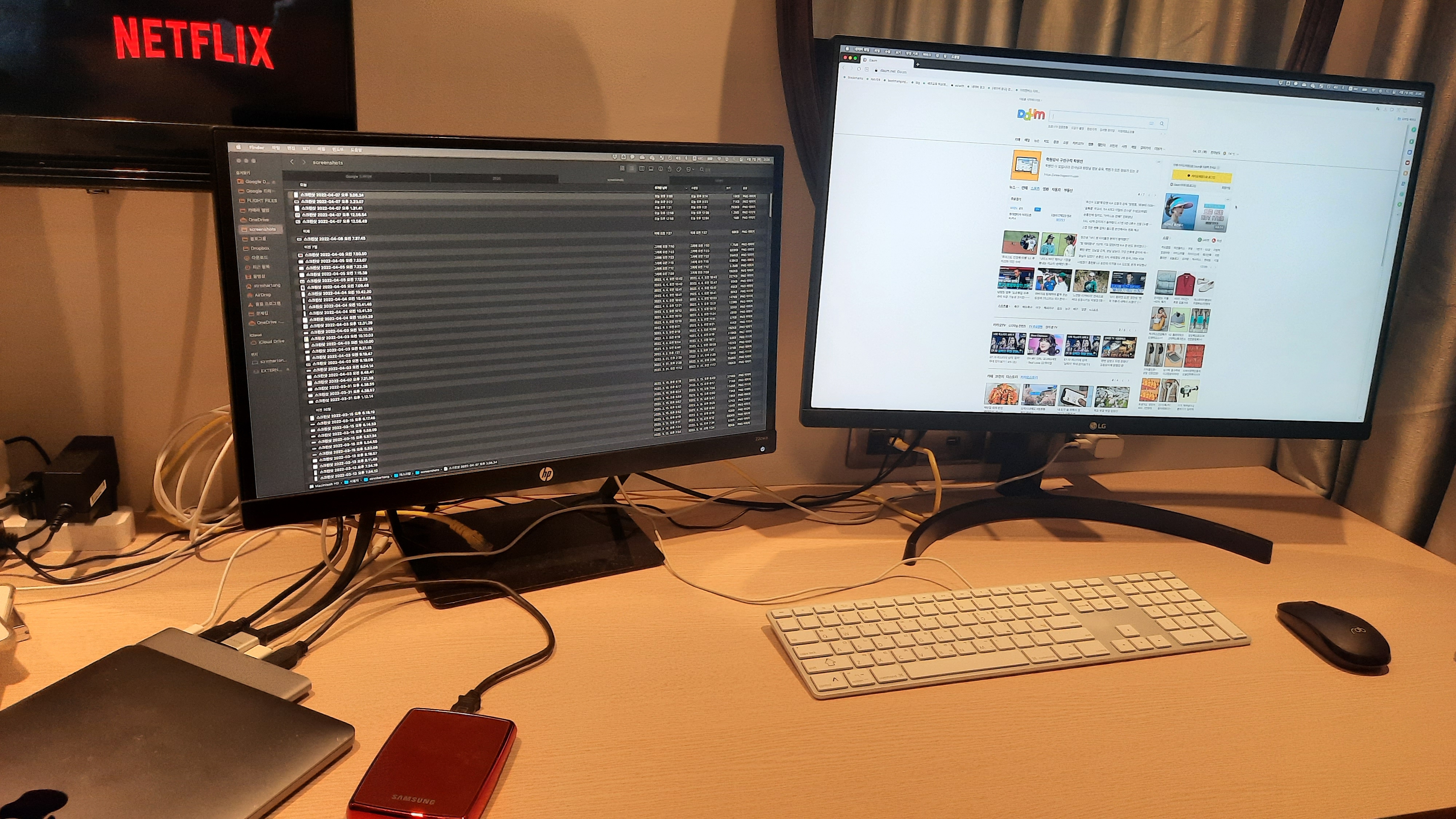 처음에는 맥미니 혹은 맥미니 등을 소유하고 있었던 터라 맥미니를 모니터에 연결하여 데스크톱을 쓰고 노트북은 따로 들고 다니고 사용했었는 데 맥북을 모니터에 연결해보니 왜 여태껏 맥북을 모니터에 연결할 생각을 못했나 생각이 들 정도로 오히려 성능도 좋고 끊기거나 하는 막힘도 없었다.