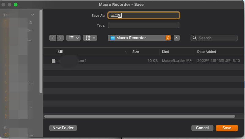 이러한 작업을 저장을 한 후에는 Open 메뉴를 통해 반복작업 등을 불러올 수 있다.