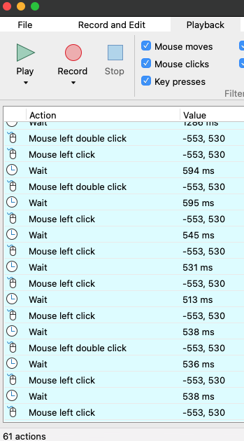 작업을 Play버튼으로 실행시키면 화면에서 자동으로 저장해두었던 마우스 움직임과 클릭 등이 이루어지는 것을 확인할 수 있다.