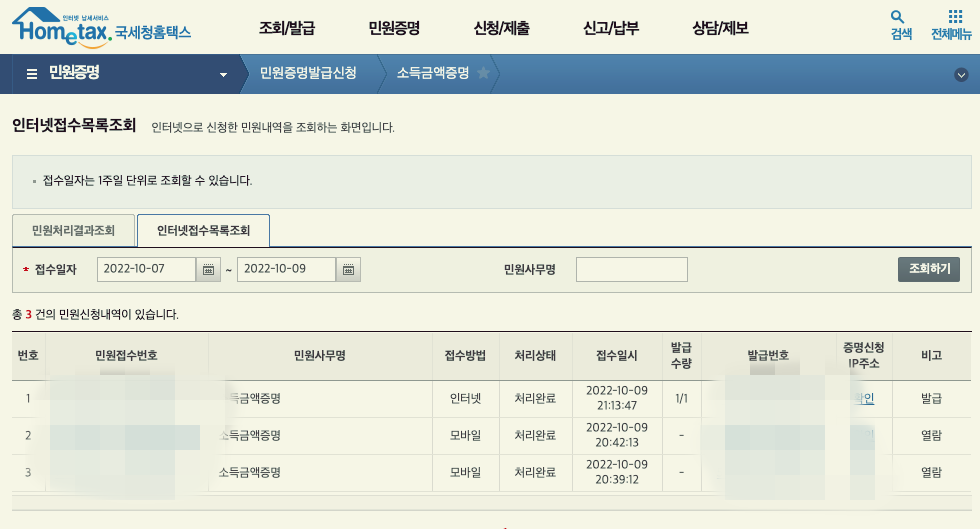 손택스에서 실제 발급을 해보면 서류는 발급이 되어 조회는 되는 데 아무런 숫자가 없는 문서가 발급되었었고