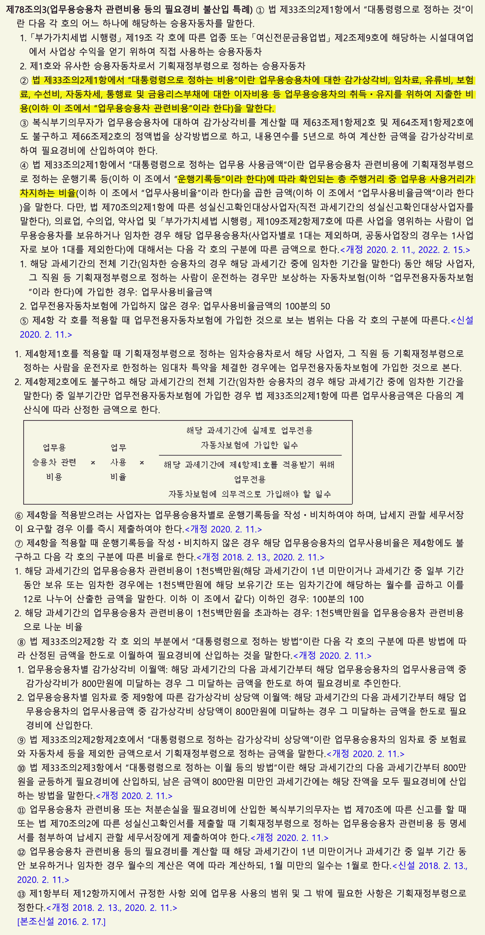 (소득세법 시행령 78조의 3 업무용승용차 관련비용 불산입 특례)