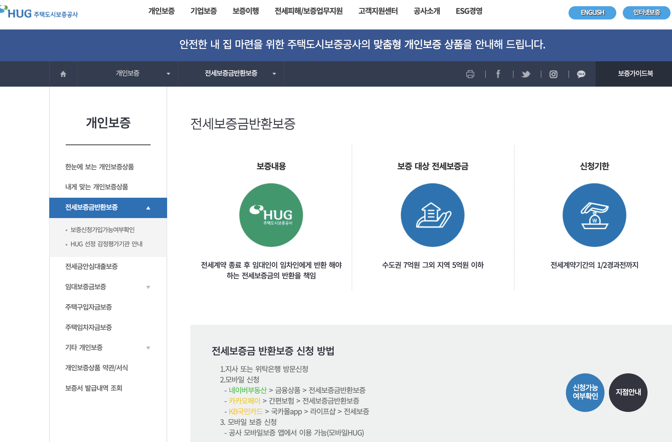 주택도시보증공사(HUG)와 한국주택금융공사(HF), 서울보증(SGI) 등에서는 전세보증금반환 보증을 제공하고 있다.
