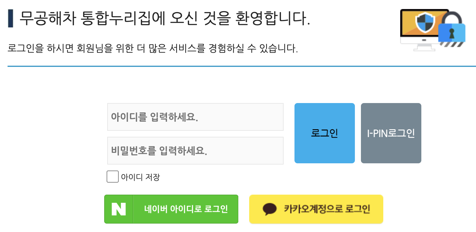 사이트에 접속하여 회원가입을 하면서 일반회원 가입과 네이버아이디나 카카오 계정으로도 로그인할 수 있으나 나중에 네이버 아이디나 카카오 아이디의 암호가 바뀌면 로그인 오류가 나오는 경우가 있음으로 가급적이면 새로운 아이디로 가입하는 것도 좋다.