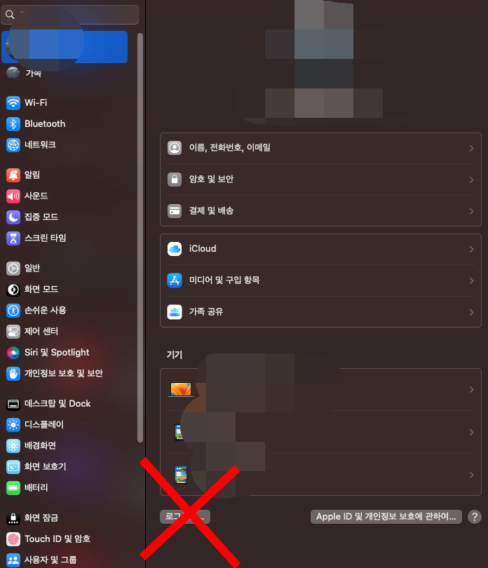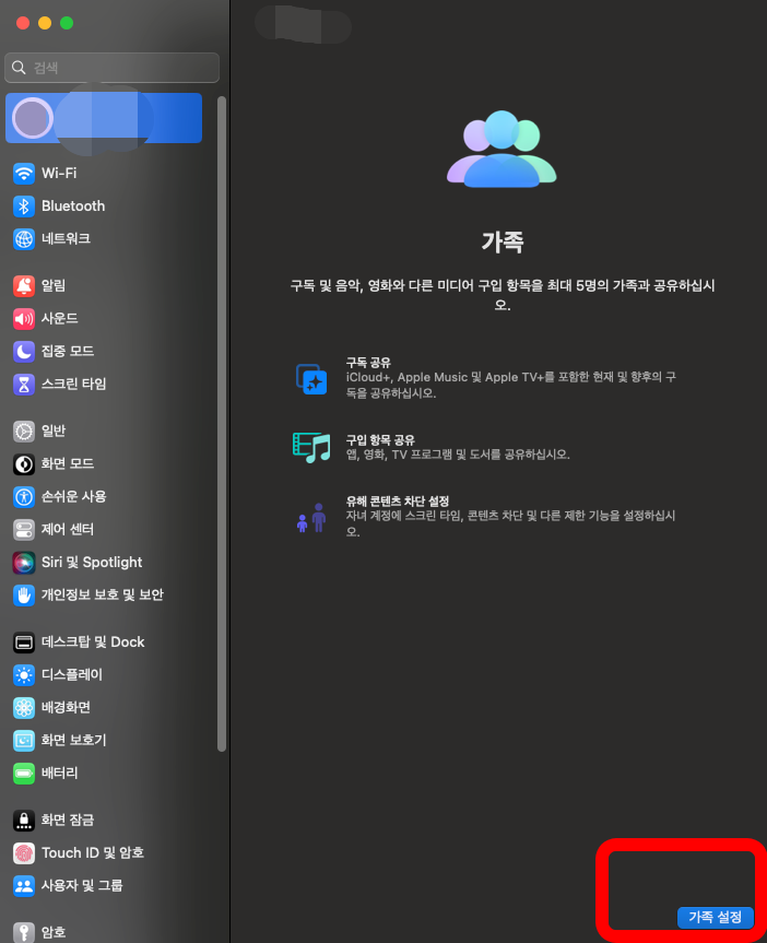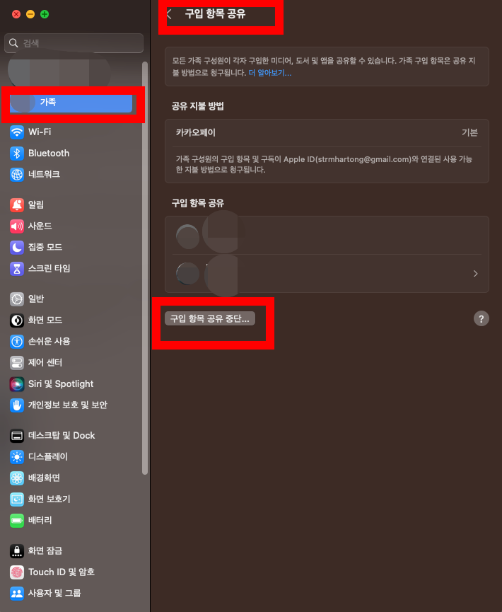 이 때는 설정에서 가족공유 사용 중단을 해주어야 한다.
