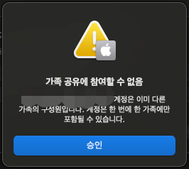 그리고 이미 다른 가족공유에 구성원이 되면 또 다른 가족의 멤버가 될 수 없고 자신이 가족을 초대하면 다른 가족의 멤버도 될 수 없다.