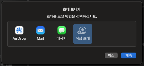 에어드롭으로 초대메시지를 보낼 수도 있고 직접 아이디와 비밀번호를 눌러 초대를 하면 된다.