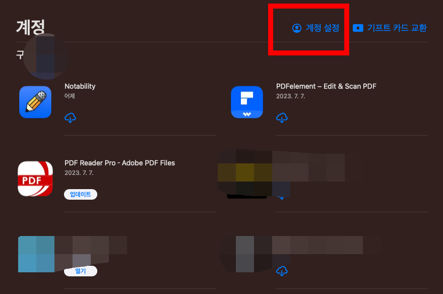 주의할 것은 애플 설정에서 로그아웃하는 것이 아니라 애플 앱 스토어의 계정설정에서 해주어야 한다.