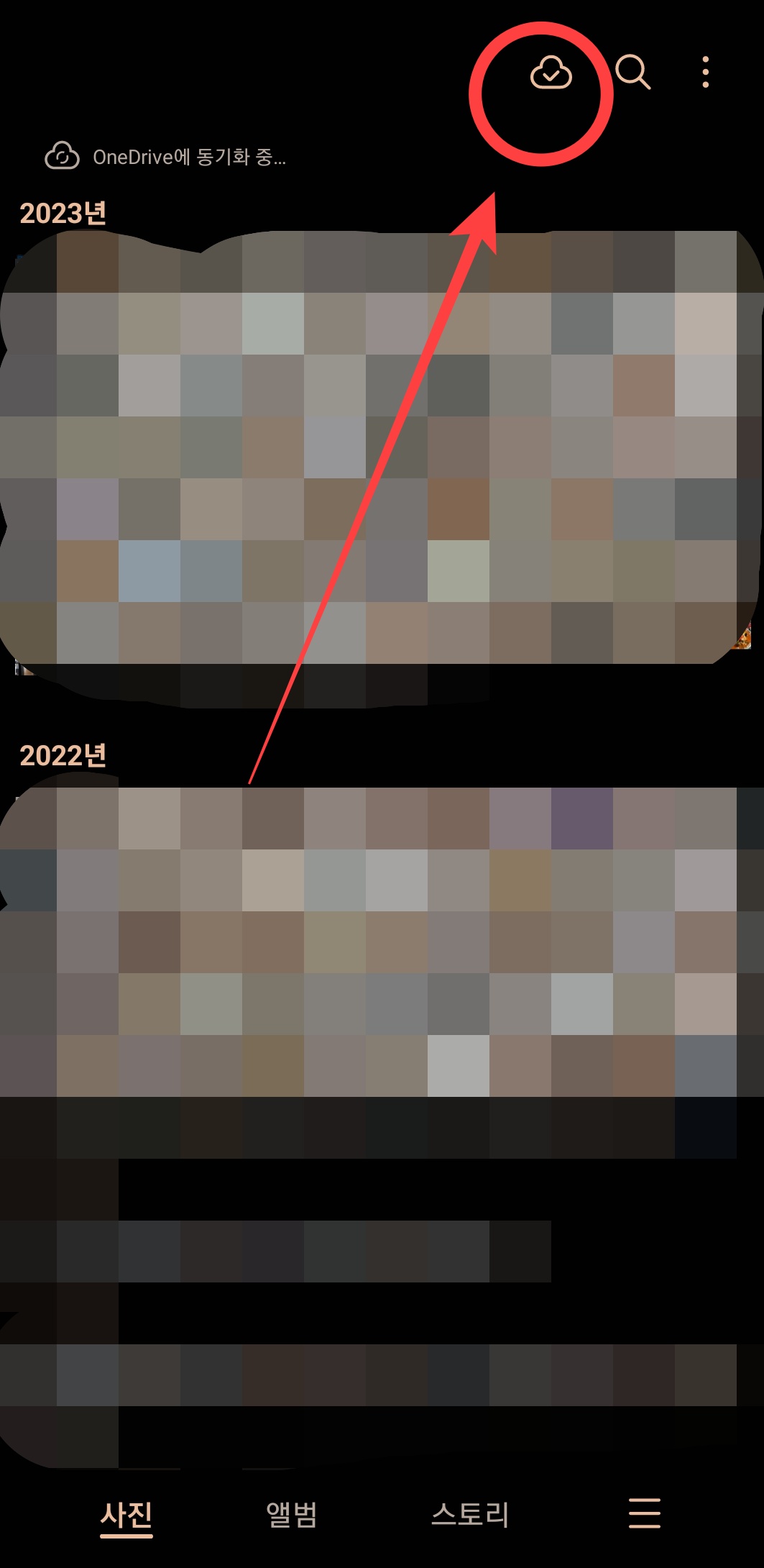 원드라이브 계정을 만든 후 갤럭시 사진 갤러리에 들어가서 구름 버튼을 눌러주면 모든 사진이 동기화된다.