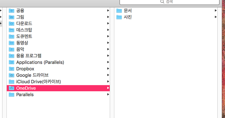 로그인을 하고 나서 원하는 장소에 원드라이브 폴더를 만들어주면 문서와 사진 폴더가 기본값으로 생성된다.