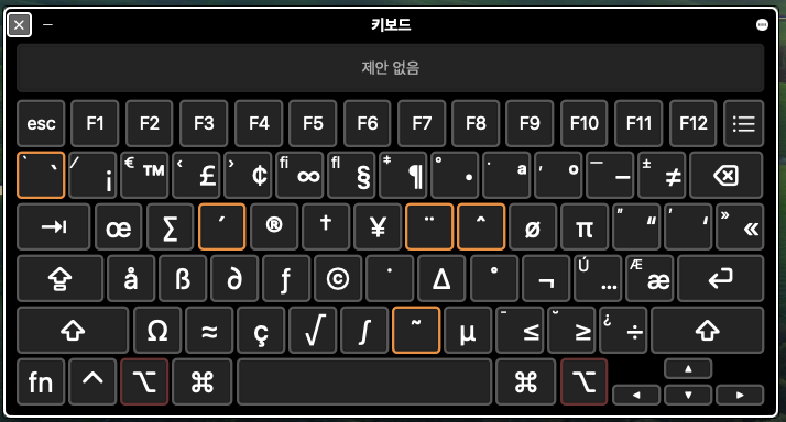 예를 들어 Shift + Option + K 를 누르면 애플 마크가 나온다.