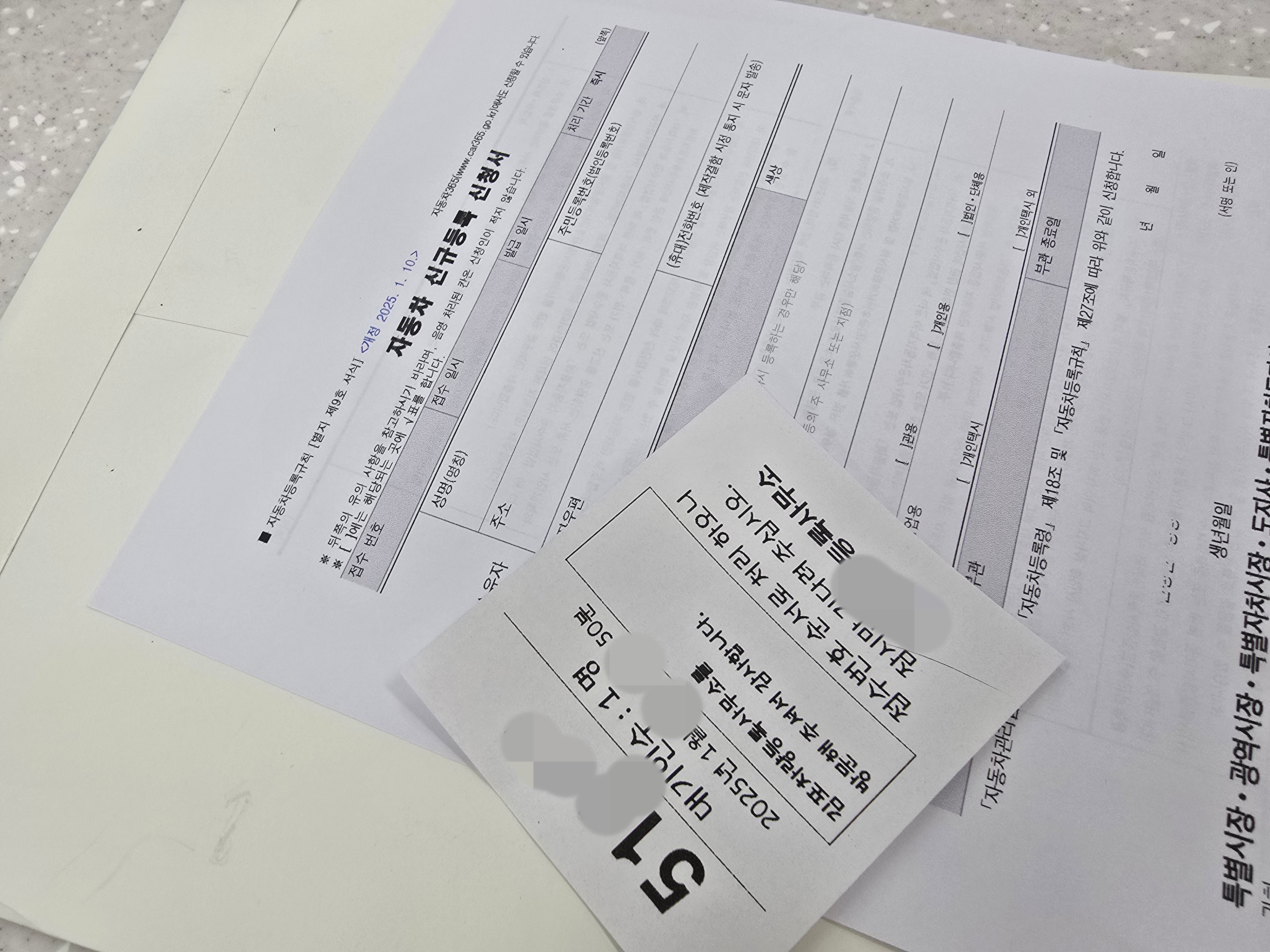 신규등록은 번호판을 받아야 하기 때문에 어차피 자동차 등록소를 방문해야 한다.