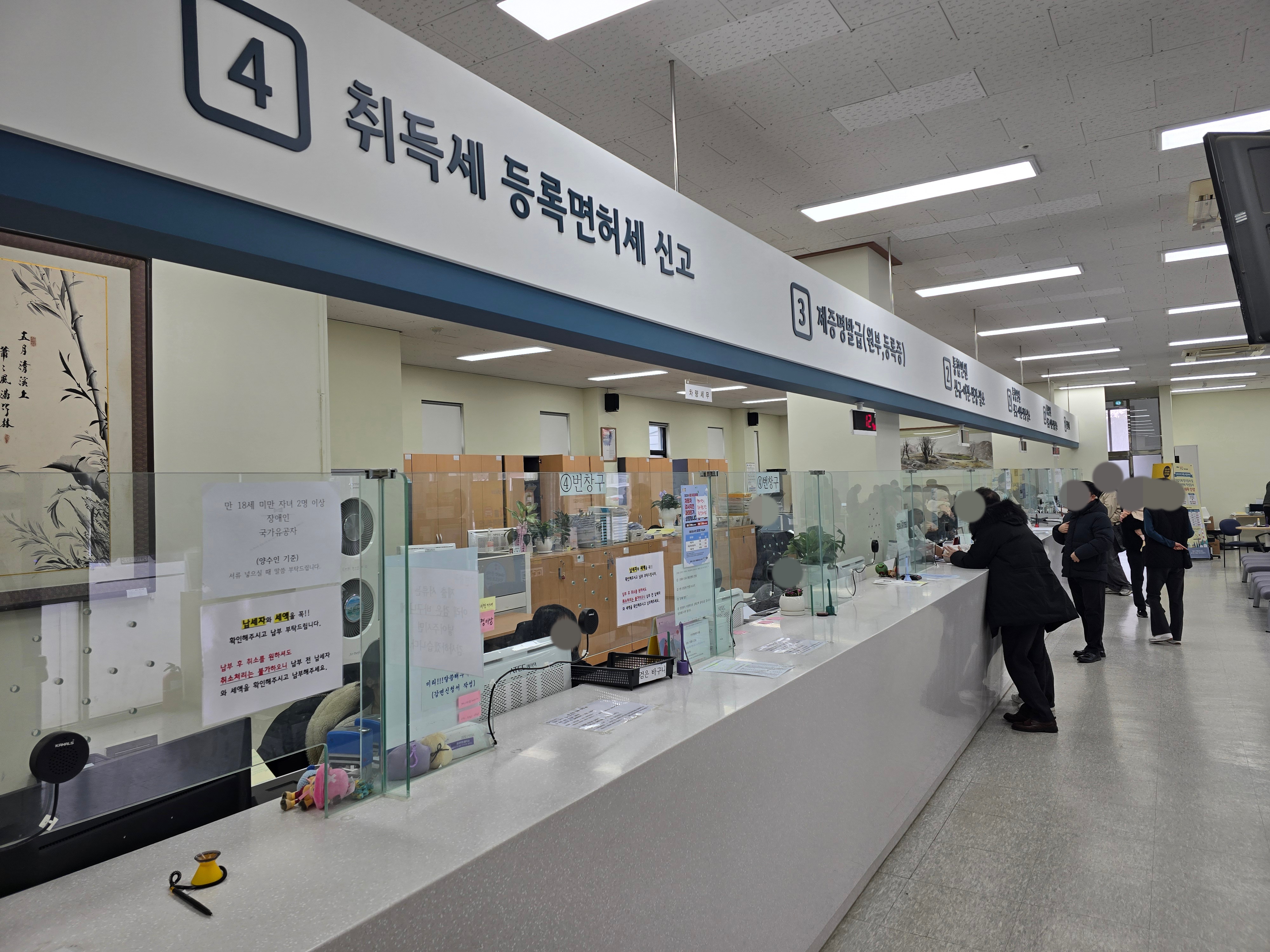 등록 사무소 방문 후 신청서와 해당서류를 넣고 접수를 하면 취득세 등록 고지서를 준다. 취득세를 지로 어플이나 현장에서 카드 등으로 납부를 하면 인지세를 납부하고 자동차 등록번호를 고른 후 자동차 등록번호판을 받아오면 끝이다.